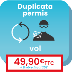 - - Duplicata permis de conduire suite à une perte ou un vol : 49,90€ TTC