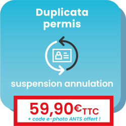 - - Duplicata permis suite à suspension/invalidation/annulation : 59,90€ TTC