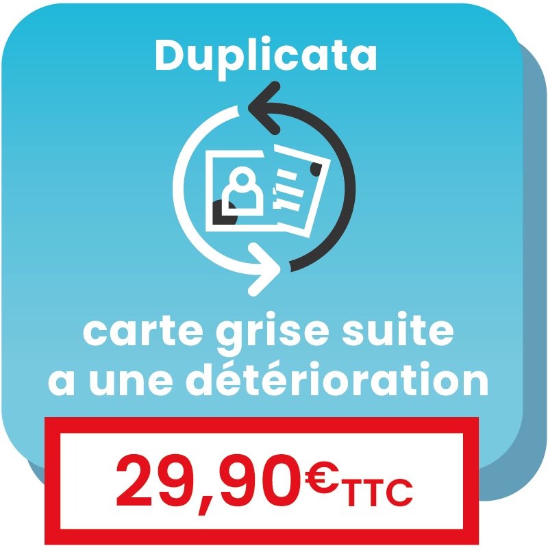 Cette démarche d'immatriculation en ligne est à effectuer pour obtenir le duplicata d'une carte grise détruite ou abîmée.